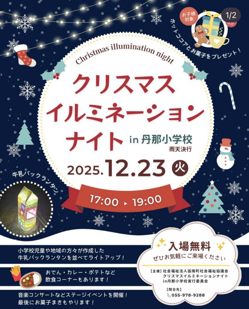 この日は、丹那小学校で開催された「クリスマスイルミネーションナイト」に伺いました。