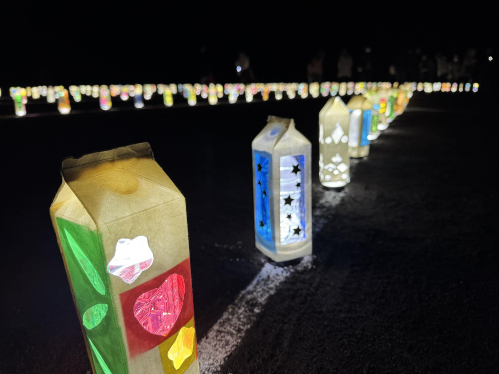 会場には、子どもたちや地域の皆さんが手作りした牛乳パックランタンが並び、校内は温かな光に包まれていました。