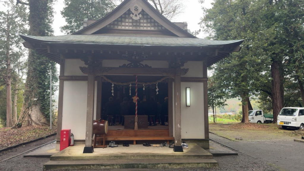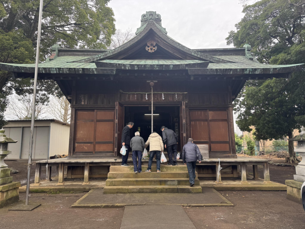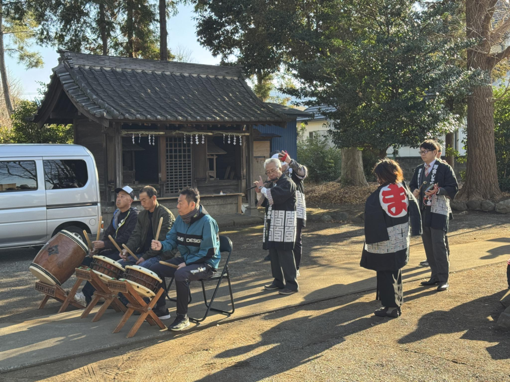 その後、間宮区の神明神社では歳旦祭に来賓としてお招きいただきました。歳旦祭に先立ち、間宮しゃぎり保存会の皆さまによるしゃぎりの演奏が披露され、厳かな雰囲気の中で新年を迎えるひとときとなりました。私もご挨拶の機会をいただき、地域の皆さまへの感謝と新年への思いをお伝えさせていただきました。