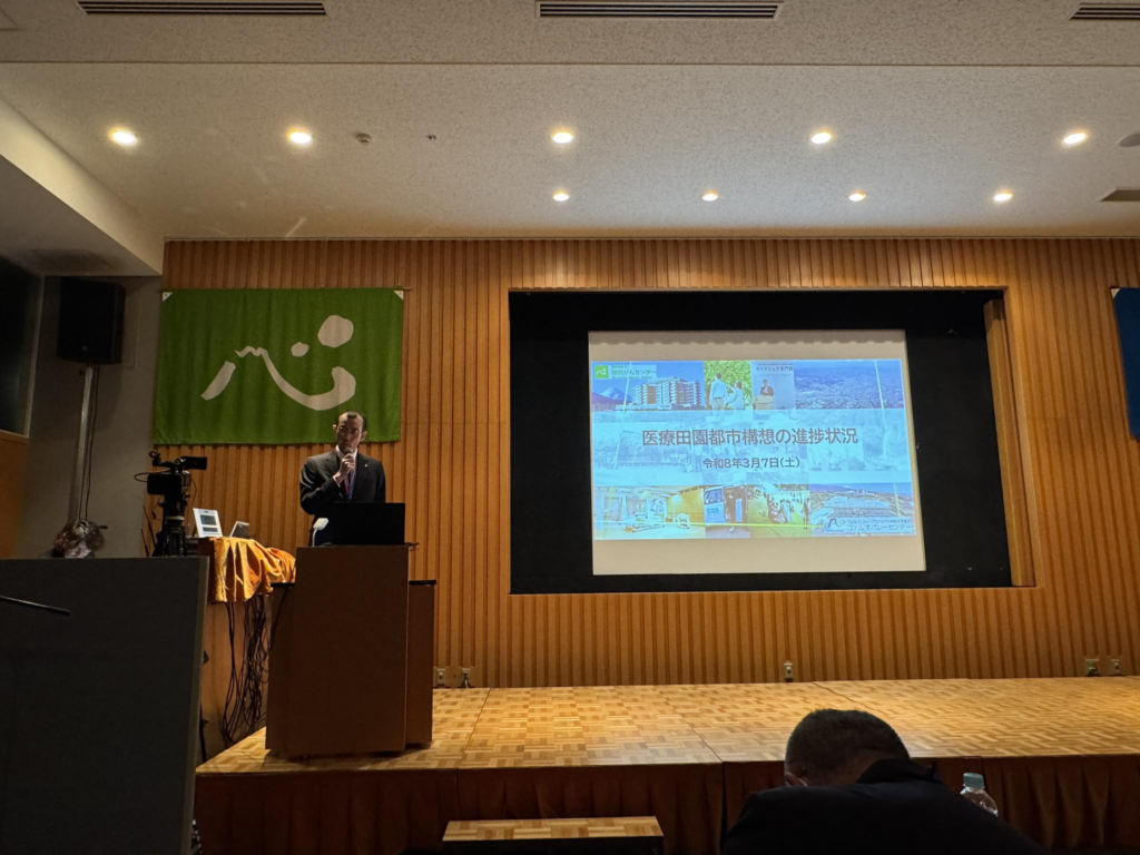第二部では、「地域活力の向上を目指す医療田園都市構想」をテーマに講演が行われ、医療の充実だけでなく、教育・文化・スポーツなども含めたまちづくりの視点から、地域の活力を高めていく取り組みが紹介されました。